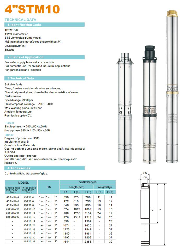 4"STM10 Deep Well pump